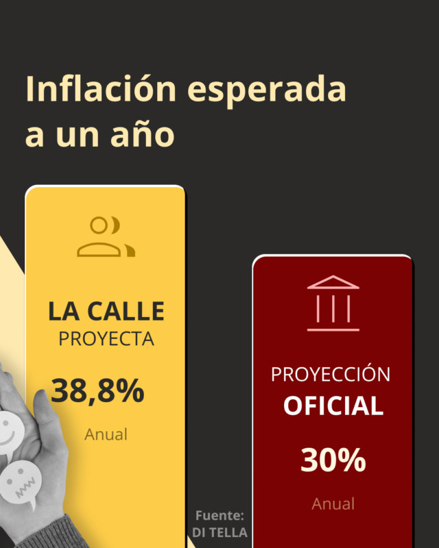 El sondeo, realizado entre el 2 y el 12 de mayo sobre 1.000 casos en grandes centros urbanos, también muestra que la inflación esperada a un año se ubica en un promedio del 38,8%, muy por encima del 30% que marca la mediana oficial y del piso que proyectan analistas externos.