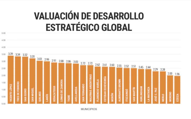 En contraste, distritos como Ezeiza y Moreno quedaron en los últimos puestos del ranking, con indicadores por debajo del promedio, especialmente en aspectos vinculados a infraestructura y medio ambiente. Esta última dimensión, de hecho, fue la que mostró los resultados más preocupantes: apenas tres municipios —Tres de Febrero, Vicente López y San Isidro— superaron los tres puntos, mientras que la mayoría quedó estancada en niveles medios o bajos.