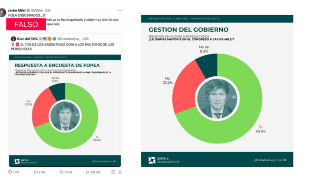 DesmentiloFalsoPortadaLa encuesta que nunca existió: Milei compartió un estudio falso atribuido a FOPEA Diego Fernándezmayo 8, 20254 min